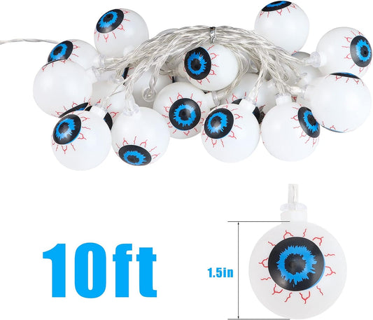 Halloween Eyeball String Lights – 20 LED 10ft Spooky Lights for Indoor & Outdoor Party Decor