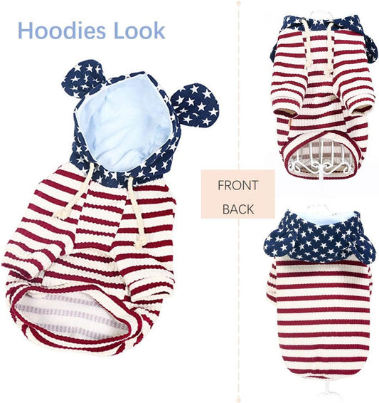 Patriotic Star-Spangled Dog Sweater Hoodie – Small Pet Outfit for 4th of July & Parties